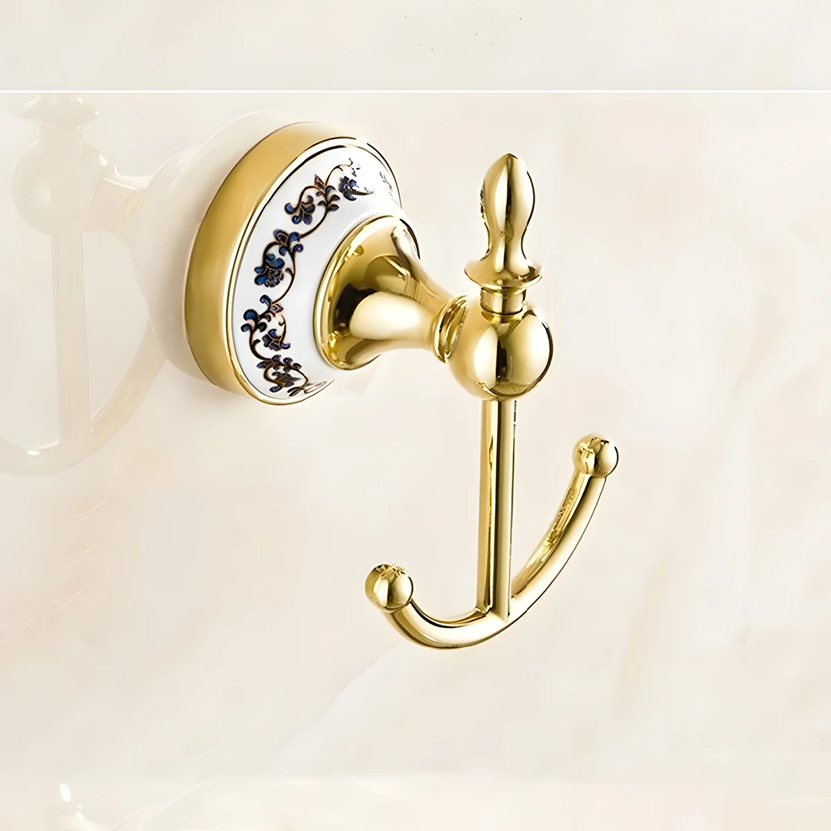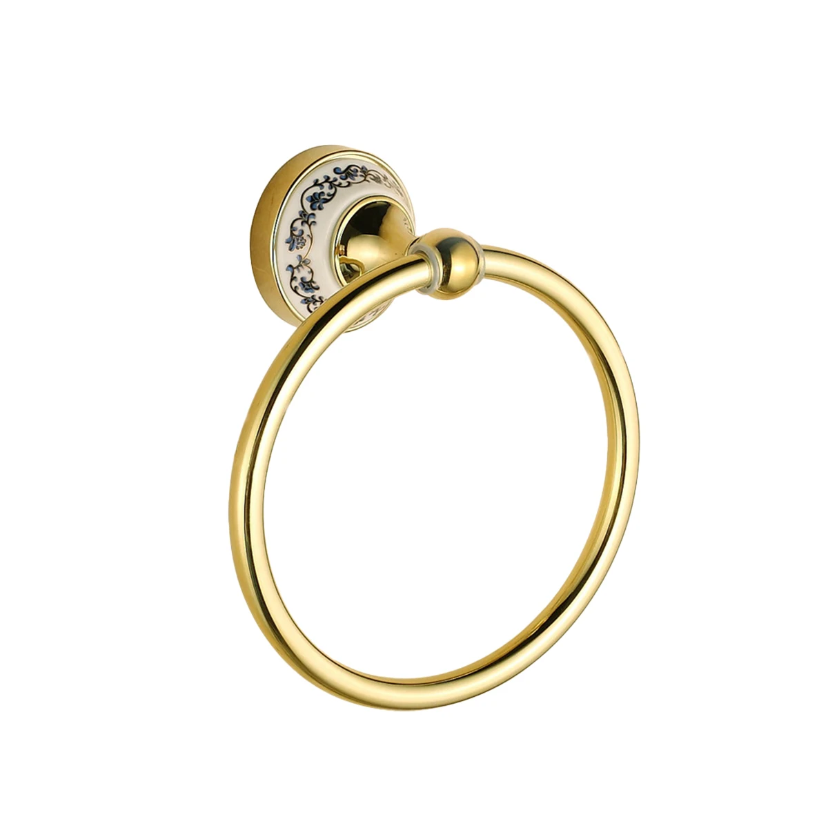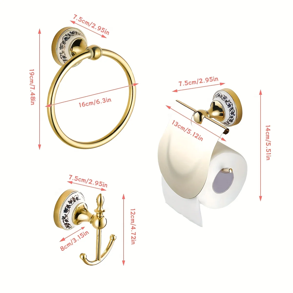 ที่ใส่กระดาษชำระสไตล์ยุโรป ลายคราม พร้อมตะขอแขวนสองอัน ห่วงแขวนผ้าเช็ดตัว และที่ใส่กระดาษชำระแบบมีฝาปิด ที่ใส่กระดาษชำระลายครามเคลือบทอง ติดตั้งแบบเจาะ