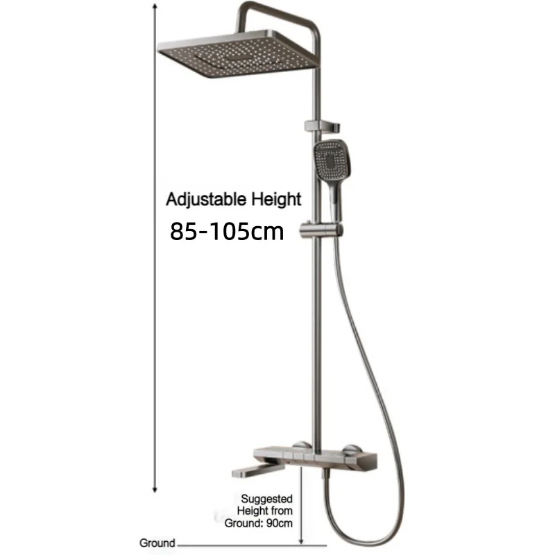 หัวฝักบัวด้านบนสามารถปรับได้หลากหลายรูปแบบ ที่วางฝักบัวมือสามารถปรับความสูงและมุมเอียงได้ ซึ่งเหมาะสำหรับความต้องการของผู้ใช้ที่แตกต่างกัน