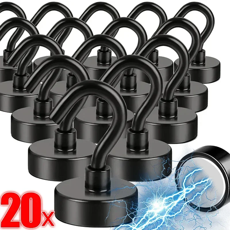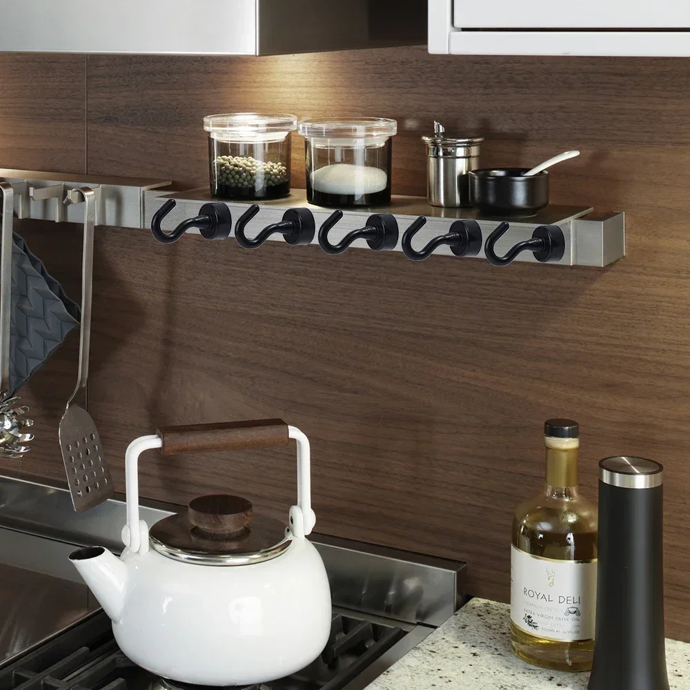 สีดําตะขอแม่เหล็กที่แข็งแกร่งสําหรับตู้เย็น Multi-Purpose Wall MAGNET Hook คีย์ Coat แขวนแขวนห้องครัวห้องน้ํา Organizer