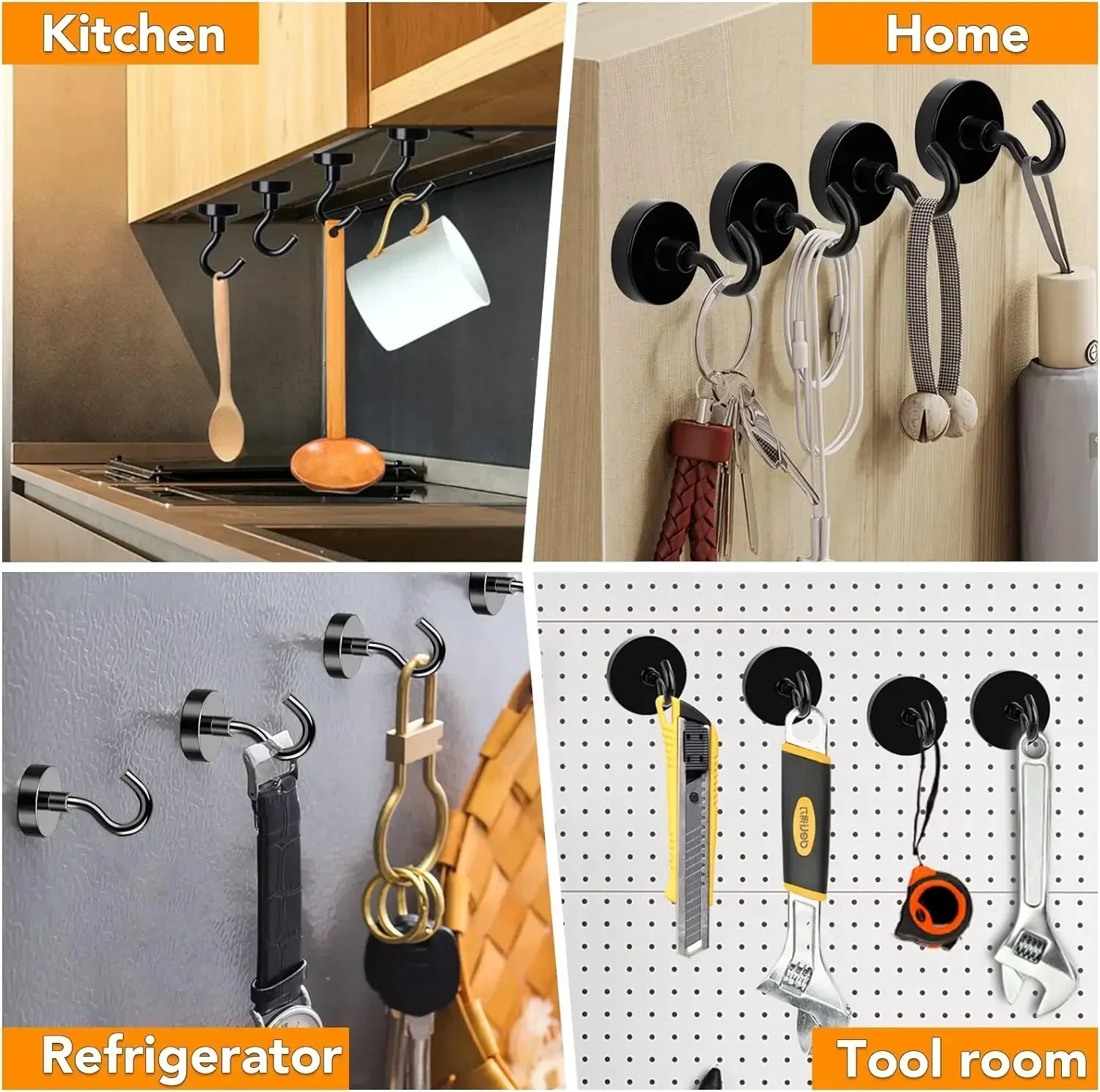 สีดําตะขอแม่เหล็กที่แข็งแกร่งสําหรับตู้เย็น Multi-Purpose Wall MAGNET Hook คีย์ Coat แขวนแขวนห้องครัวห้องน้ํา Organizer