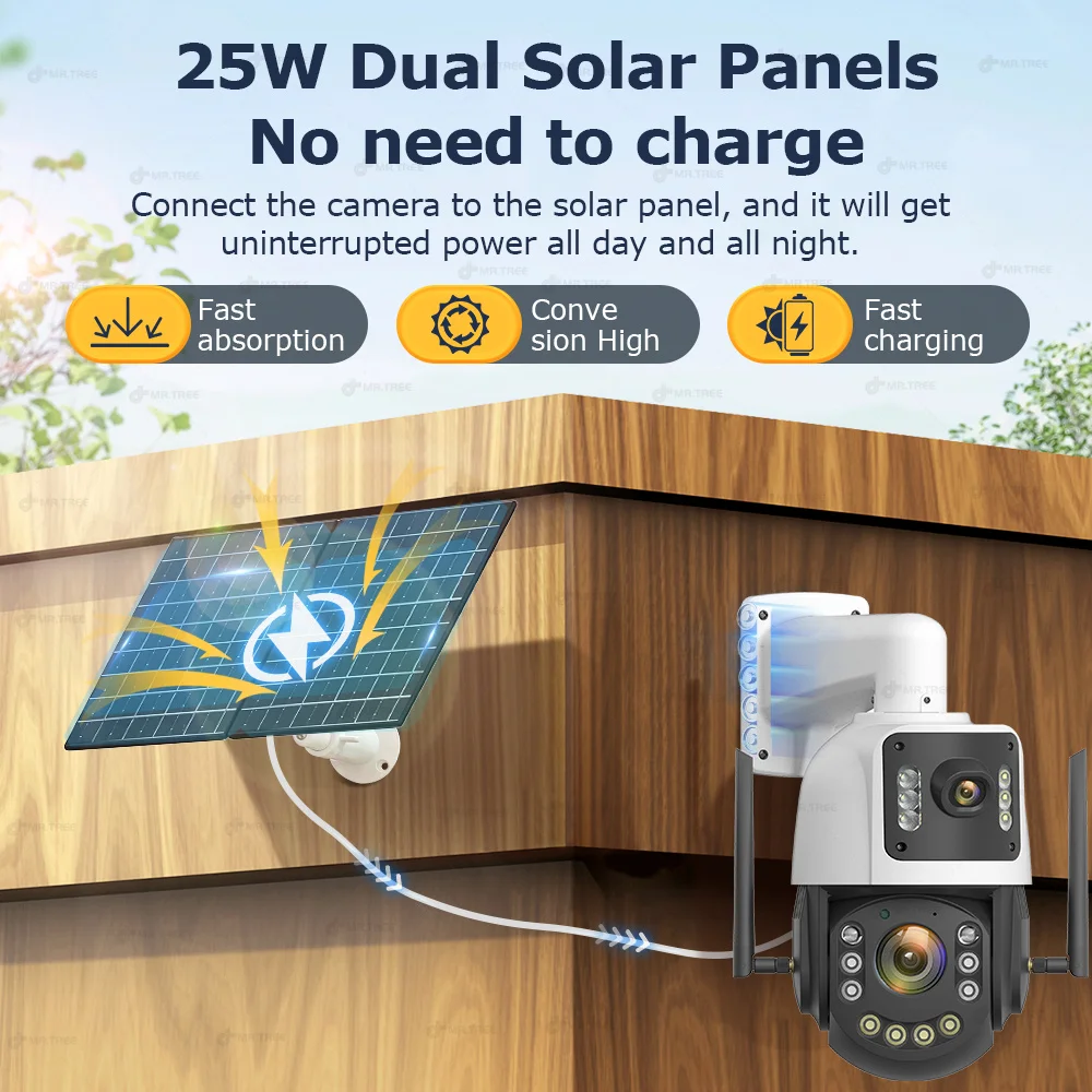 กล้องมีแบตเตอรี่ความจุสูงในตัวและติดตั้งแผงโซลาร์เซลล์ขนาด 25Wนอกจากนี้ยังรองรับโหมดประหยัดพลังงาน AOV ดังนั้นกล้องจึงสามารถทำงานได้อย่างง่ายดายในรอบ 365 วัน