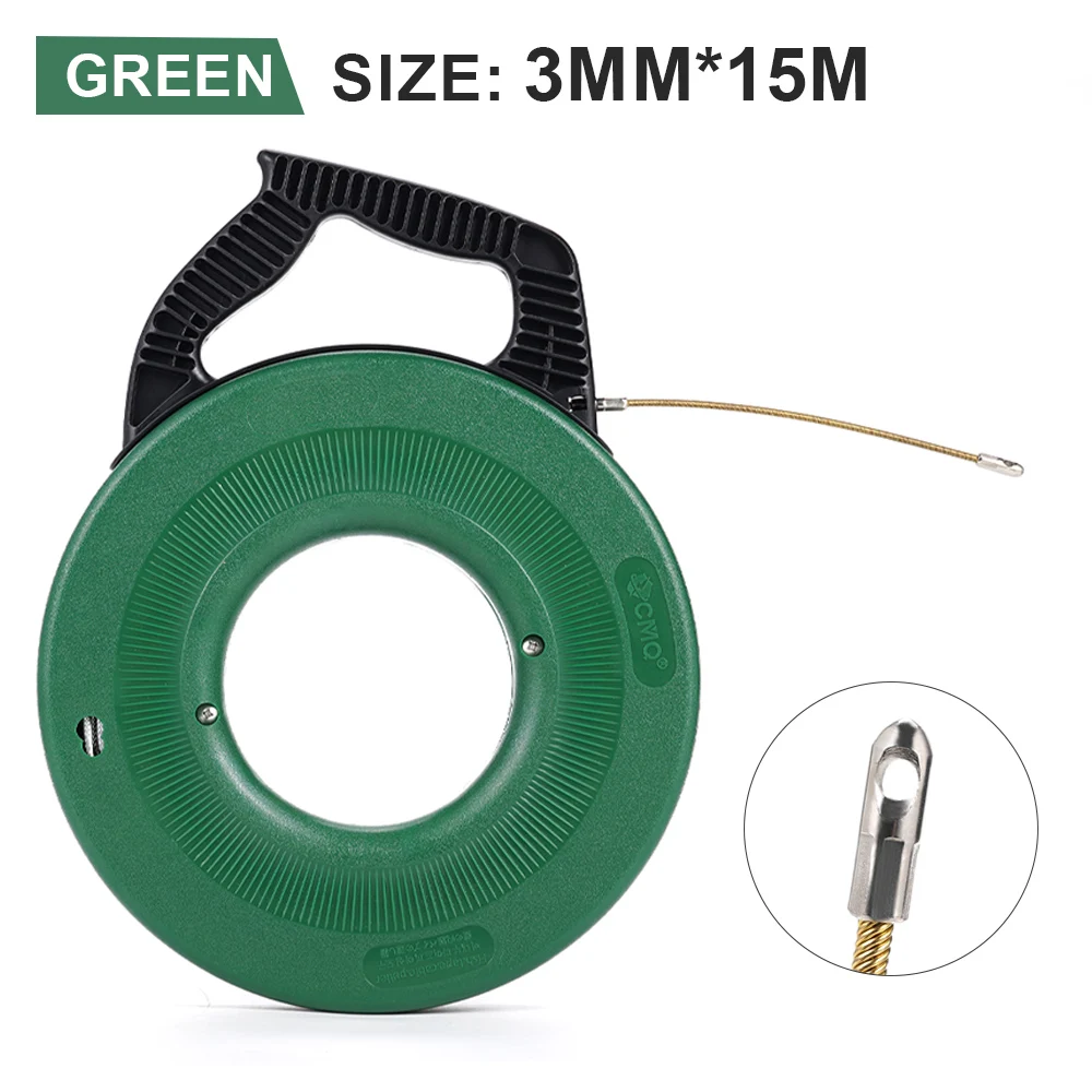 เครื่องมือร้อยสายไฟแบบดึง 3 มม./15 ม. อุปกรณ์ร้อยสายไฟรูปทรงปลา สำหรับร้อยสายไฟในรูท่อ ใช้สำหรับงานเดินสายไฟในรถยนต์