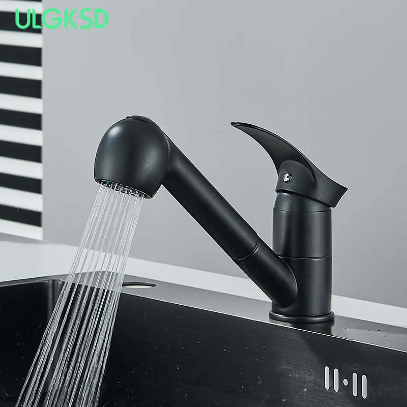 Matte Black 360° Rotation Pull Out Brass Faucet Hot And Cold