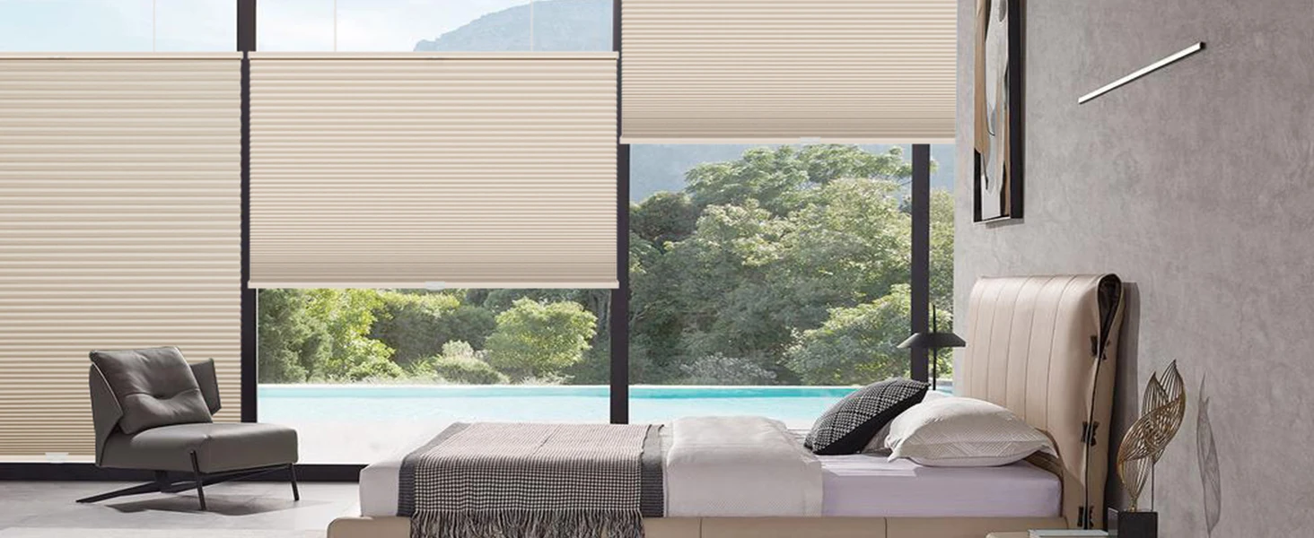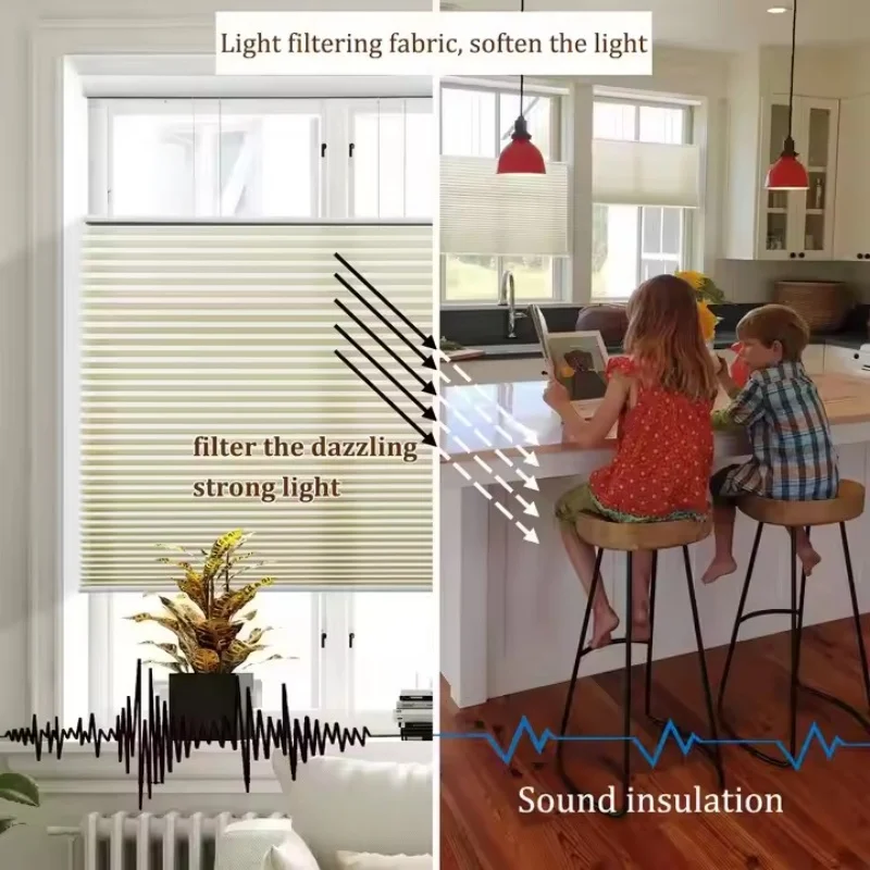 โรงงานจีนขายส่งแบบกําหนดเองรีไซเคิล Blackout รีโมทคอนโทรลอัจฉริยะด้านบนลงและด้านล่างขึ้นผ้าม่านรังผึ้งสําหรับ Window