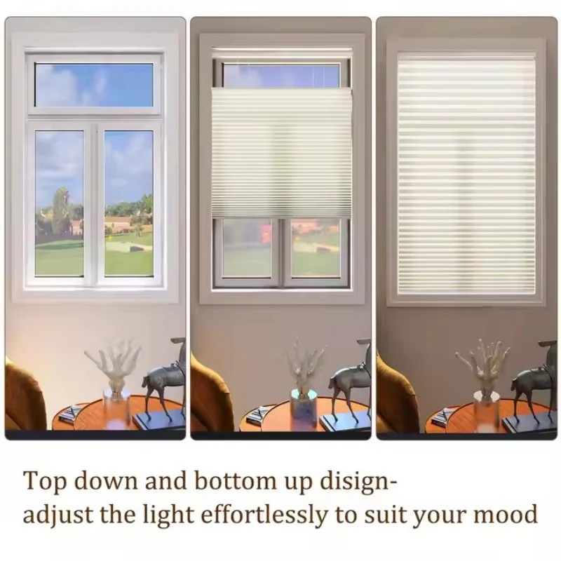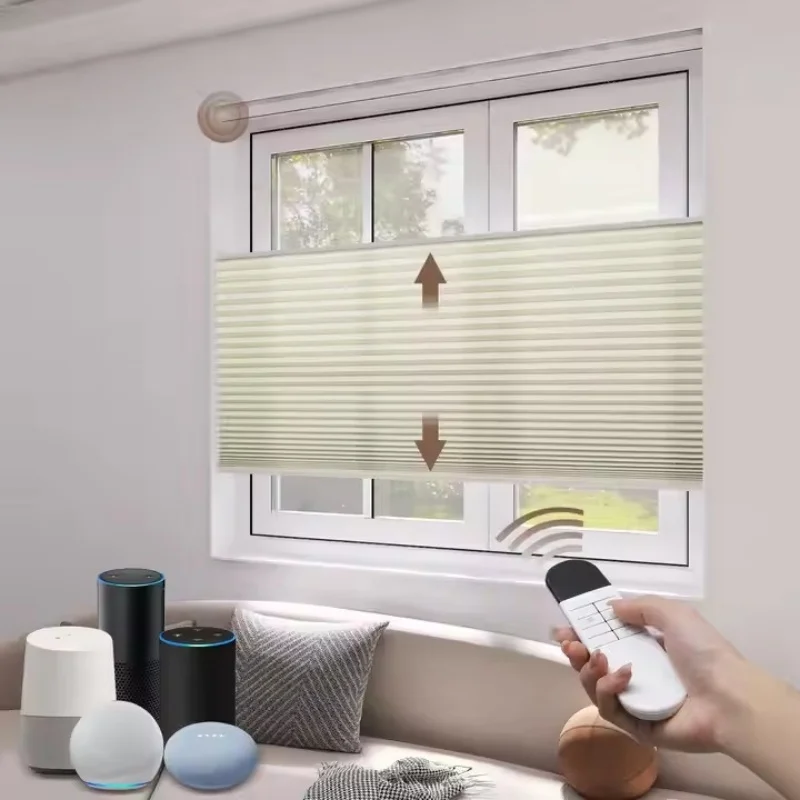 โรงงานจีนขายส่งแบบกําหนดเองรีไซเคิล Blackout รีโมทคอนโทรลอัจฉริยะด้านบนลงและด้านล่างขึ้นผ้าม่านรังผึ้งสําหรับ Window