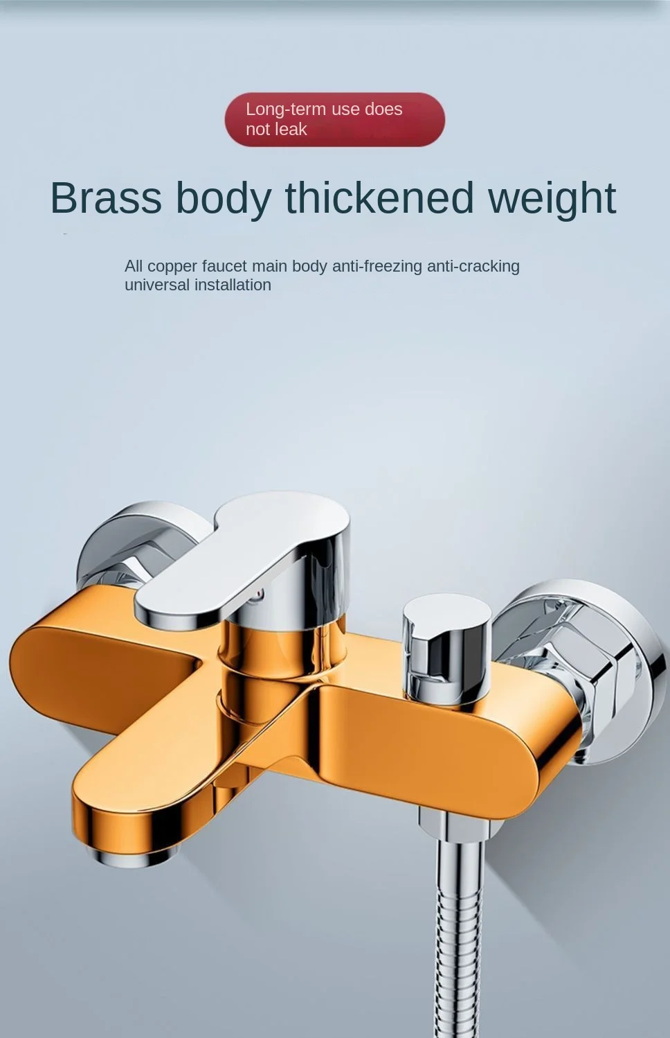 ก๊อกอาบน้ำวาล์วผสมน้ำทองแดงทั้งหมดชุดฝักบัวสวิตช์ผสมอ่างอาบน้ำก๊อกน้ำร้อนและเย็นสามหัว