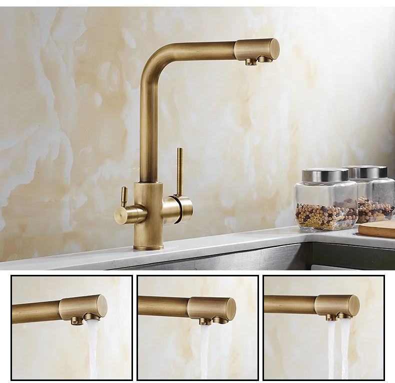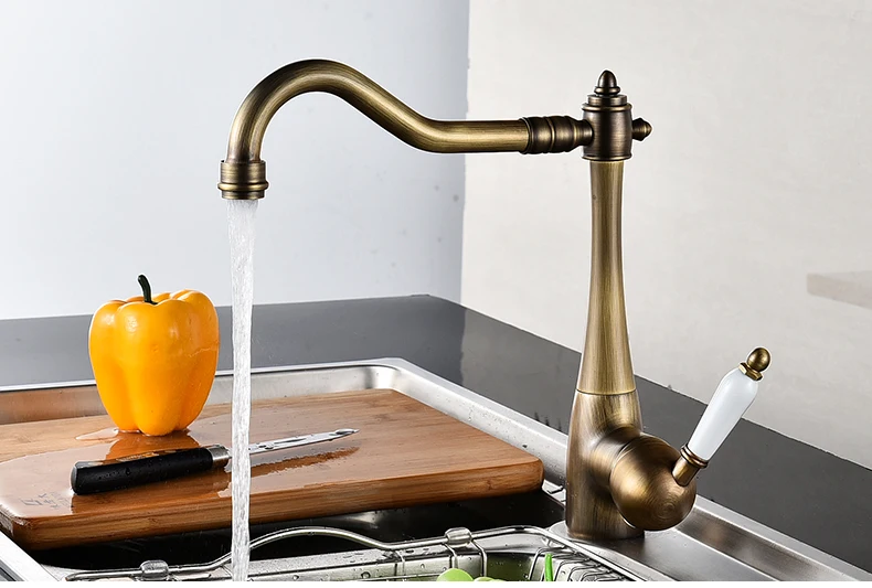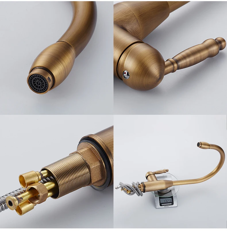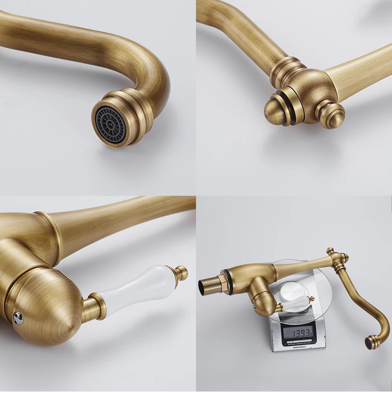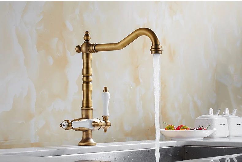 Antique Bronze ก๊อกน้ําห้องครัว 360 หมุนหมุนก๊อกน้ําร้อนน้ําเย็น Tap Mixer ก๊อกน้ําอ่างล้างจาน ELK331