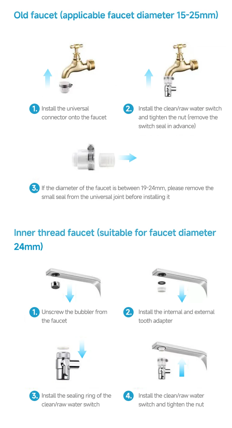• เข้ากันได้กับก๊อกส่วนใหญ่:เครื่องกรองน้ำสำหรับก๊อกน้ำนี้เข้ากันได้กับก๊อกน้ำมาตรฐานส่วนใหญ่ทำให้เป็นตัวเลือกที่หลากหลายสำหรับครัวเรือนที่มีก๊อกน้ำชนิดต่างๆ