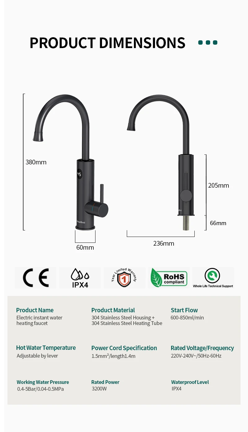 ชื่อสินค้า: ก๊อกน้ำไฟฟ้าพร้อมหน้าจอดิจิทัลแสดงอุณหภูมิ 3200W สำหรับน้ำร้อนทันที