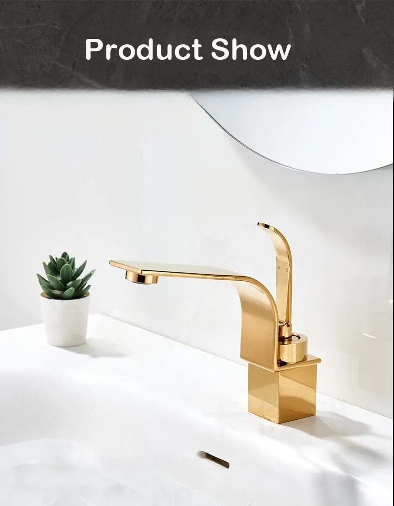 Chrome ก๊อกน้ําอ่างล้างหน้า Modern Gold Deck ติดตั้งห้องน้ําผสมก๊อกน้ําสีดําห้องน้ําอ่างล้างจานน้ําตกก๊อกน้ําก๊อกน้ําสีเทา