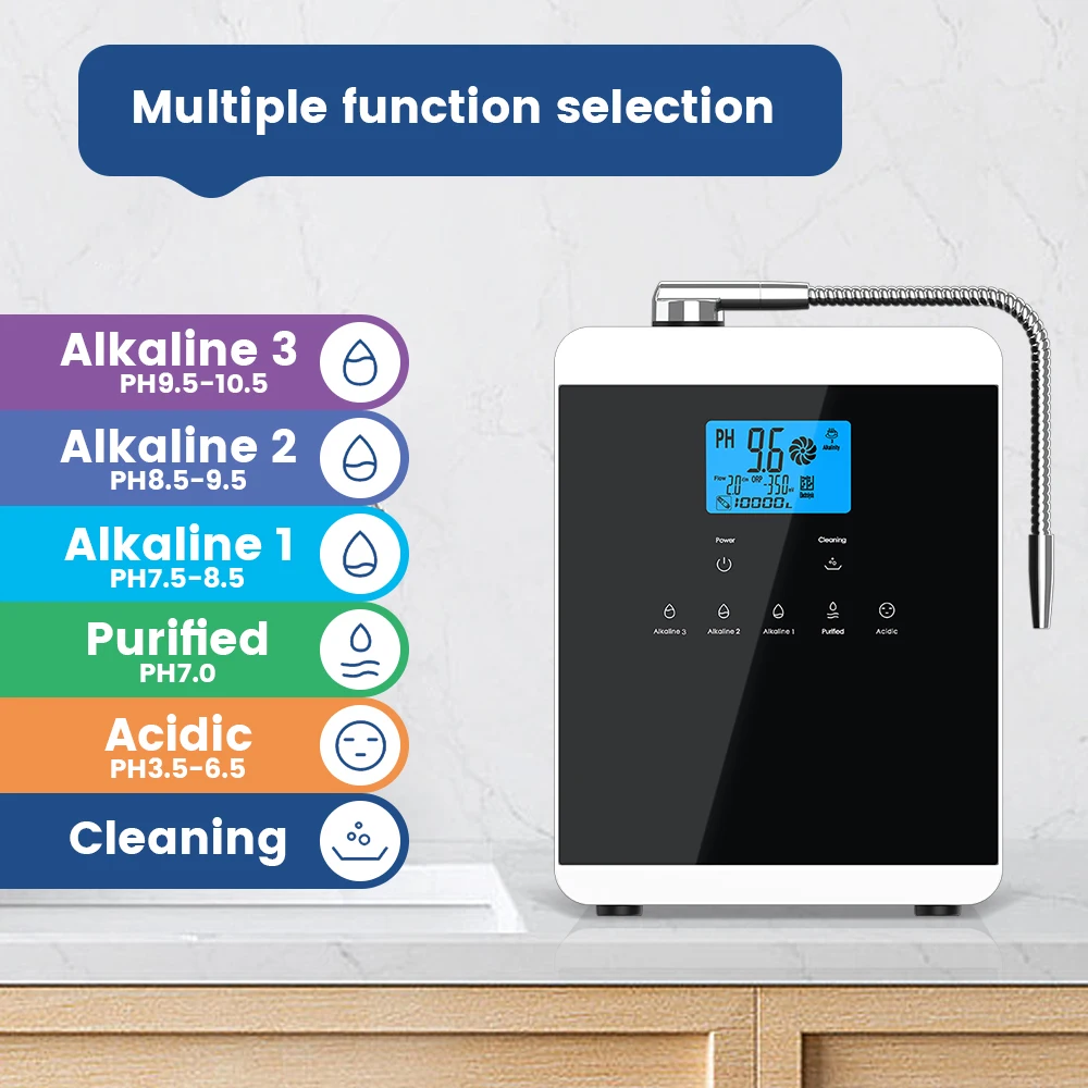 11 แผ่น Platinum เคลือบน้ําอัลคาไลน์ Ionizer เครื่องใช้ในครัวเรือน PH 4.5 ~ 10.5 อัลคาไลน์ Acid Water Ionizer สําหรับ Home