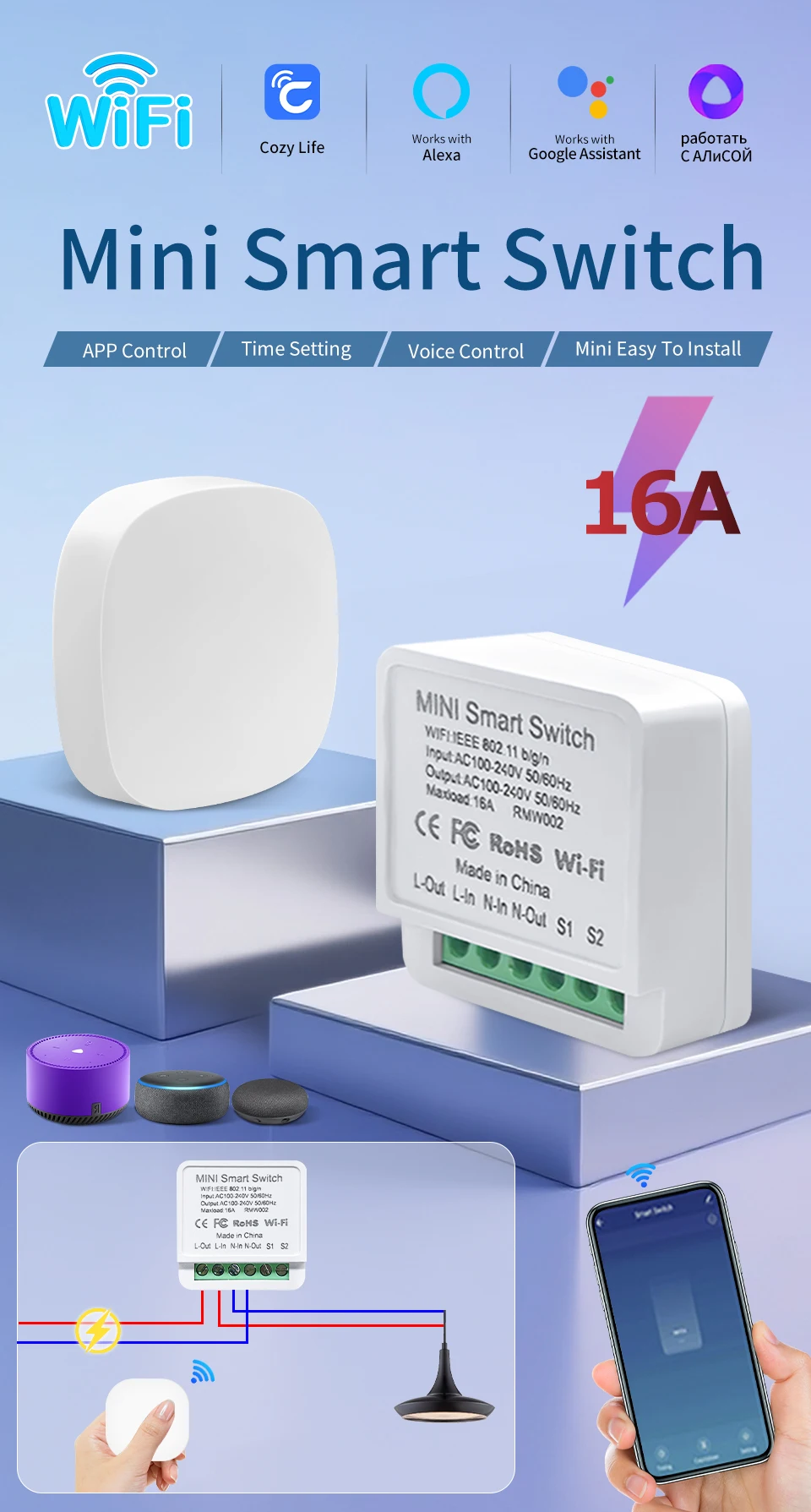 สวิตช์ไฟอัจฉริยะ Wifi สำหรับ Alexa, Google, Yandex, SmartThings โมดูลสวิตช์ไฟ DIY พร้อมฟังก์ชั่นหน่วงเวลา สำหรับโคมไฟเพดาน รองรับแอป Cozylife จาก 1 รีวิว