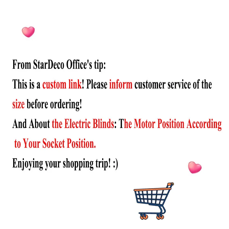 เราสามารถปรับแต่งระบบได้ 3 แบบ: แบบแมนนวล, แบบไร้สาย, และแบบรีโมทคอนโทรลกรุณาติดต่อเราเพื่อแจ้งระบบที่คุณต้องการและแจ้งรายละเอียดเกี่ยวกับมู่ลี่ของคุณ เพื่อให้เราสามารถเสนอราคาให้คุณได้โดยเร็วที่สุด