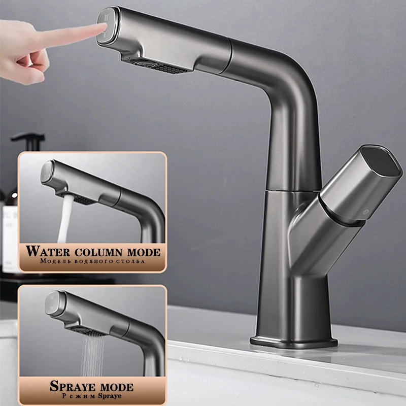 ก๊อกน้ำในห้องน้ำสีเทาก๊อกอ่างล้างหน้าสแตนเลสสตีลก๊อกอ่างล้างหน้าแบบสี่เหลี่ยมหัวเดียวติดตั้งบนดาดฟ้า