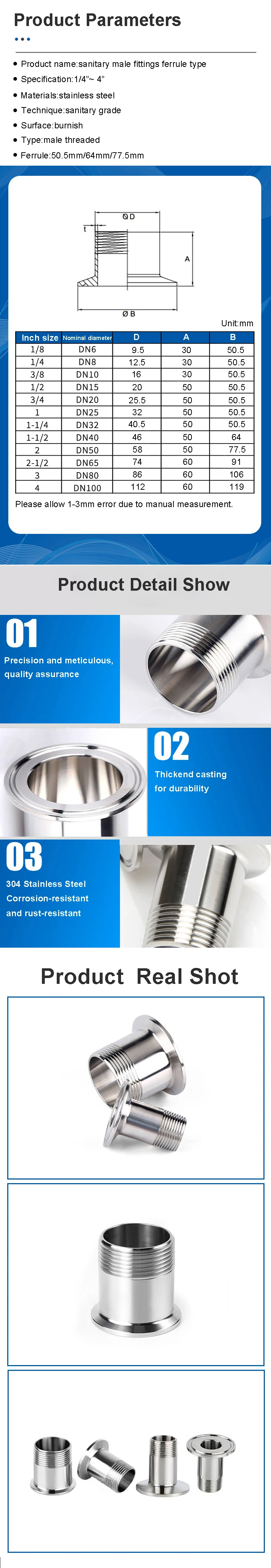 1/2 “3/4” 1 “1-1/4” ท่อเกลียวสุขาภิบาลสแตนเลส SS304 Tri CLAMP Ferrule อะแดปเตอร์ Homebrew เบียร์ไวน์