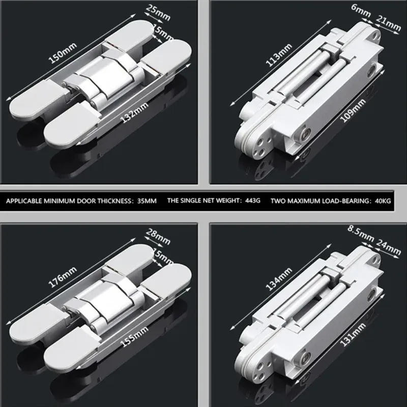 2 ชิ้น/ล็อต 40/80Kg บานพับประตูบานพับเฟอร์นิเจอร์ซ่อนไม้ประตูพับปรับซ่อนรูปแบบแบริ่งความจุ