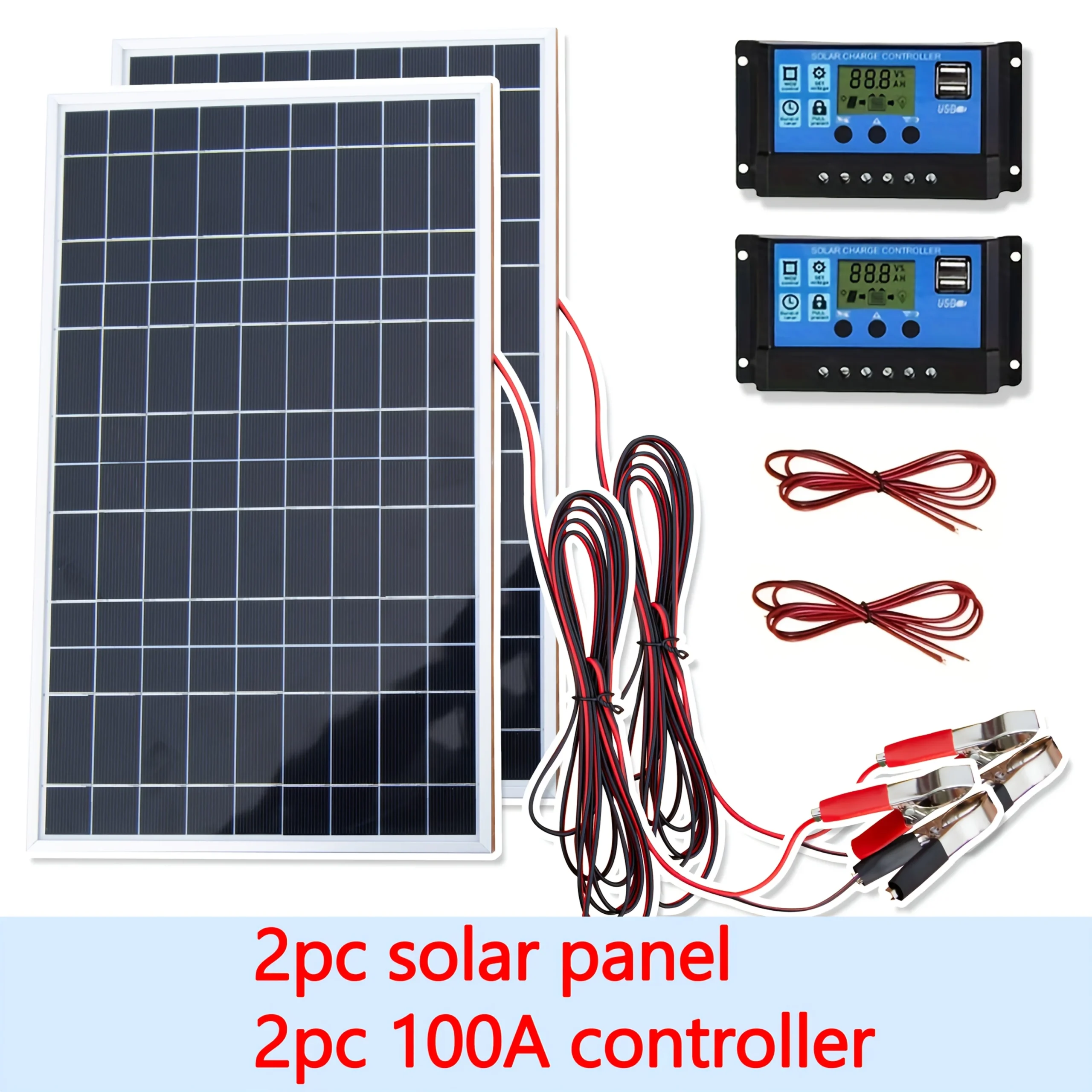 1000W 500W 12V ชุดแผงพลังงานแสงอาทิตย์พลังงานแสงอาทิตย์ 100A Controller เครื่องชาร์จพลังงานแสงอาทิตย์, เหมาะสําหรับ Fast แบตเตอรี่ในบ้าน/ตั้งแคมป์/RV