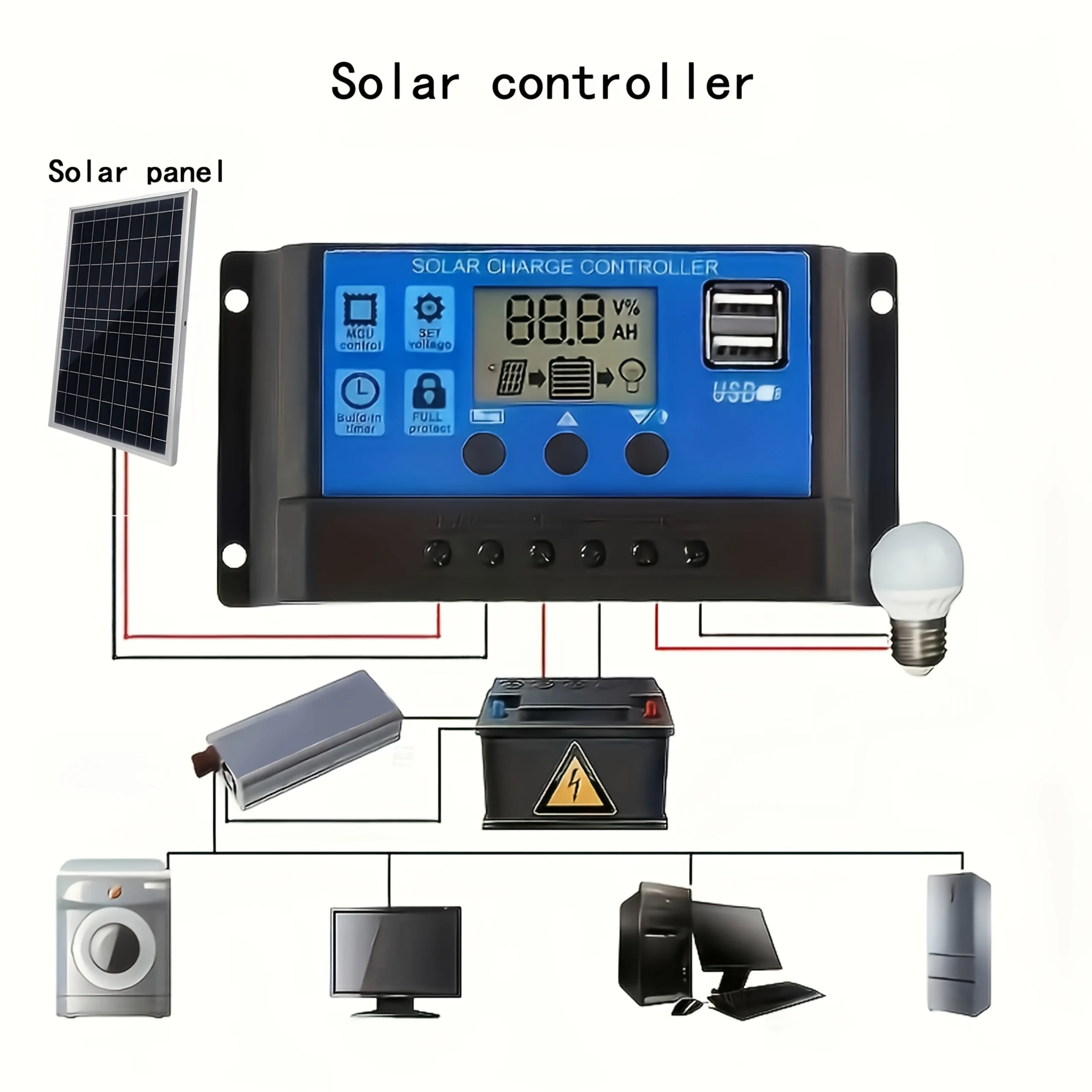 เครื่องควบคุม10A-100A เซลล์แสงอาทิตย์12V แผงโซล่า1000W, แผงเซลล์แสงอาทิตย์สำหรับรถยนต์ RV คาราวานบ้านตั้งแคมป์กลางแจ้งแบตเตอรี่