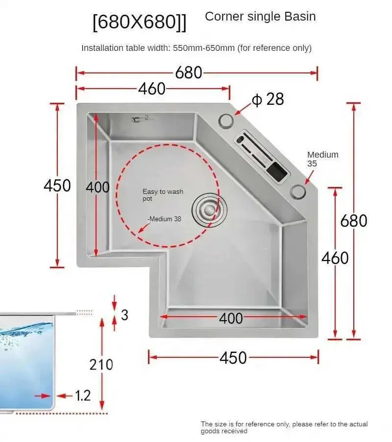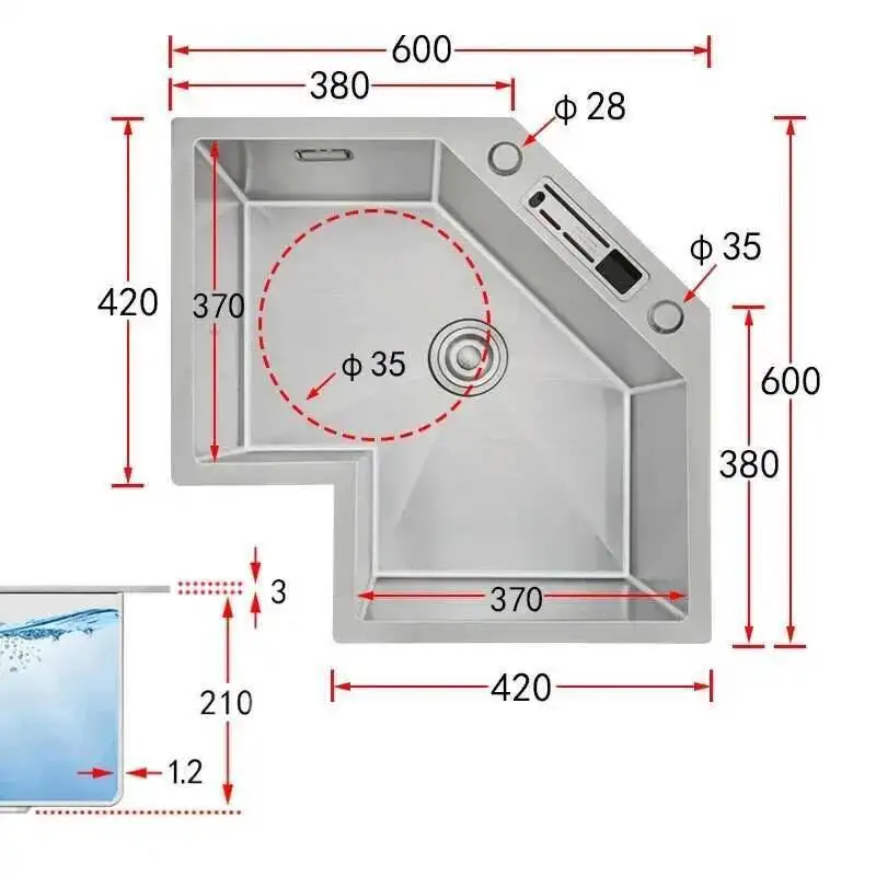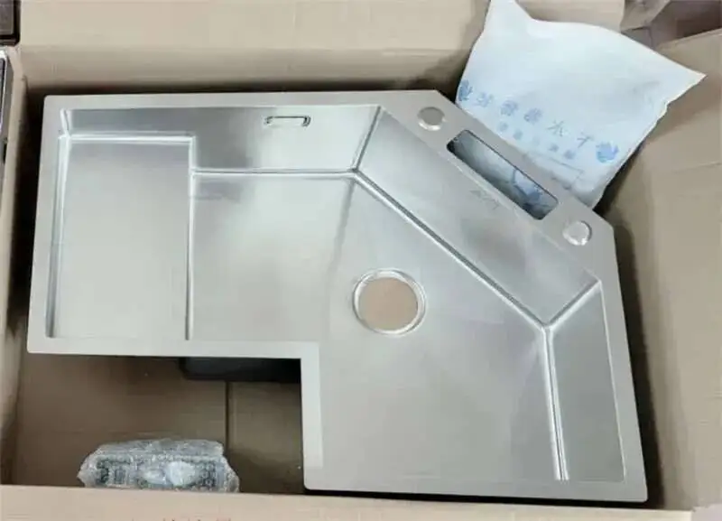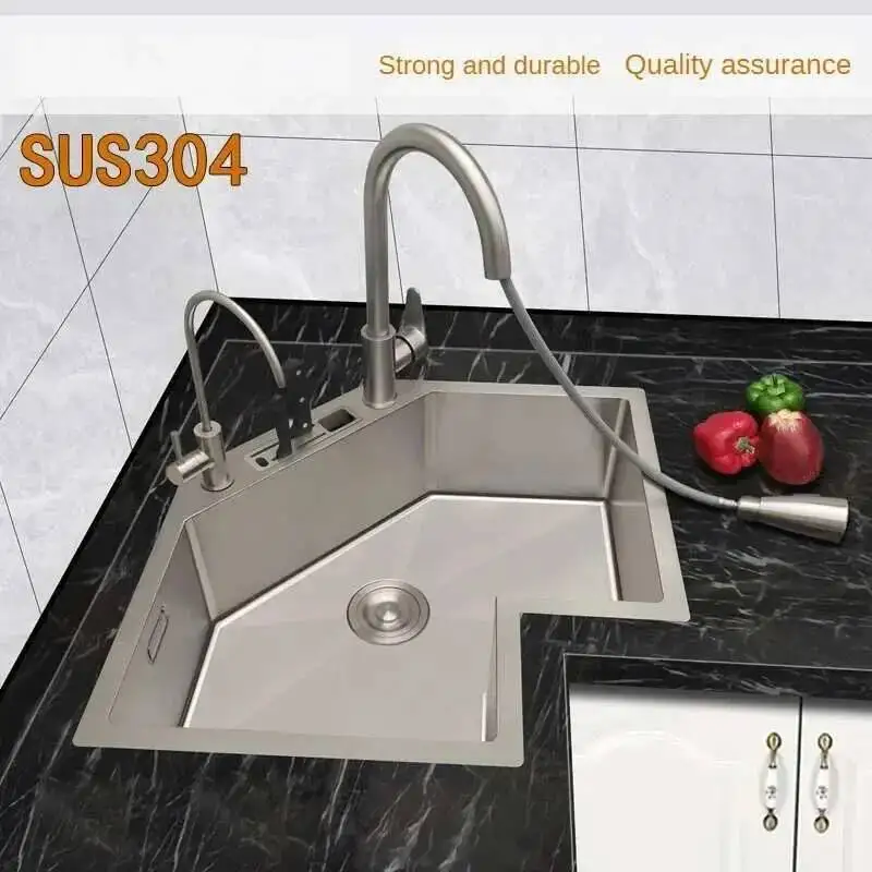 อ่างล้างจานมุมเดี่ยว รุ่นพิเศษ ทันสมัย สแตนเลส อ่างล้างจานครัวขนาดเล็ก อ่างล้างจานสำหรับอพาร์ทเมนต์ขนาดใหญ่ อ่างล้างจานครัวรูปตัว L พร้อมอุปกรณ์เสริม