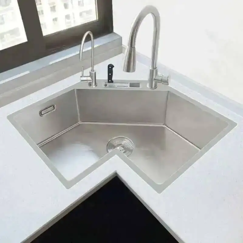 อ่างล้างจานมุมเดี่ยว รุ่นพิเศษ ทันสมัย สแตนเลส อ่างล้างจานครัวขนาดเล็ก อ่างล้างจานสำหรับอพาร์ทเมนต์ขนาดใหญ่ อ่างล้างจานครัวรูปตัว L พร้อมอุปกรณ์เสริม